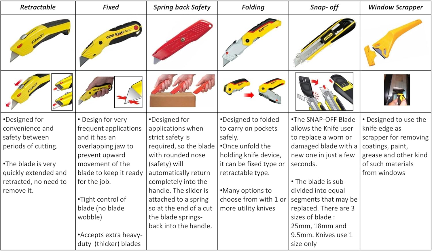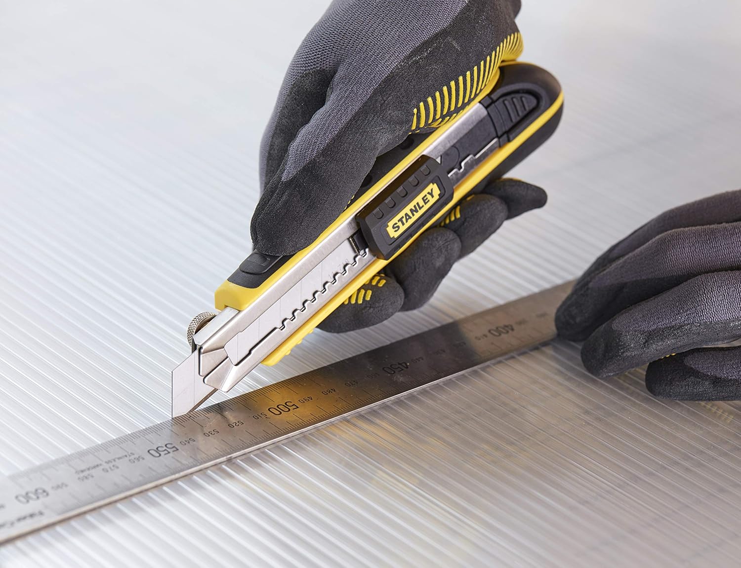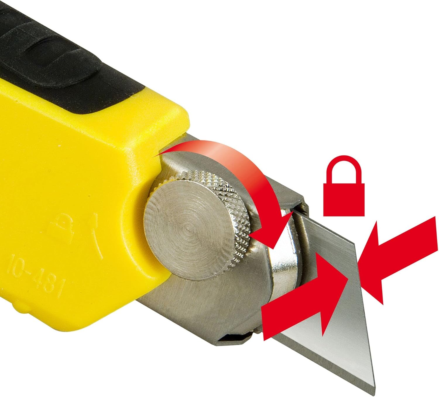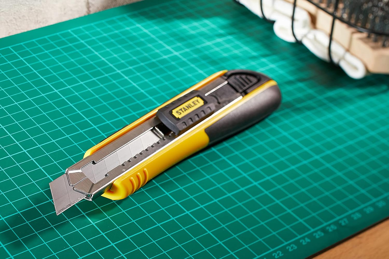 CONFORT D’UTILISATION : Corps ABS bi matière pour une bonne prise en main DOUBLE SECURITE : Avec le blocage supplémentaire par curseur pour un maintien parfait de la lame DURABILITE : Chariot de lame en acier inoxydable, longévité et guidage parfait de la lame CASSE-LAMES INTEGRE: Pour casser les lames de manière sûre et efficace; cartouche de 6 lames à rechargement automatique FOURNI AVEC : 6 lames de cutter 18 mm STANLEY FATMAX